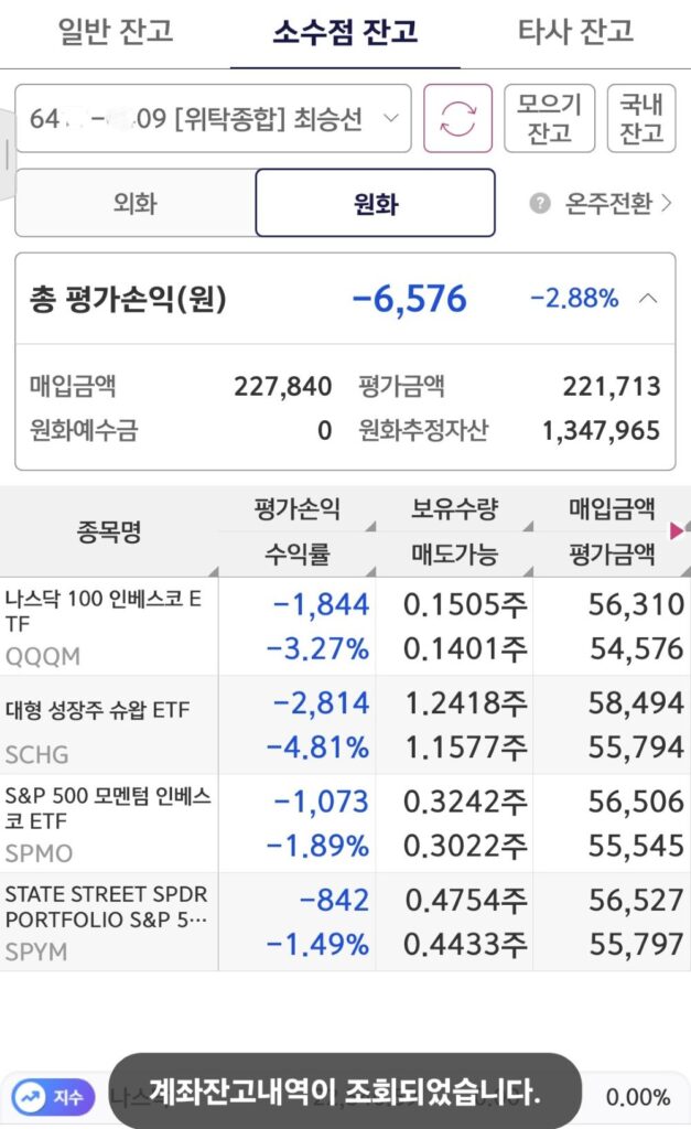 • 매입금액: 227,840원 / 평가금액: 221,713원