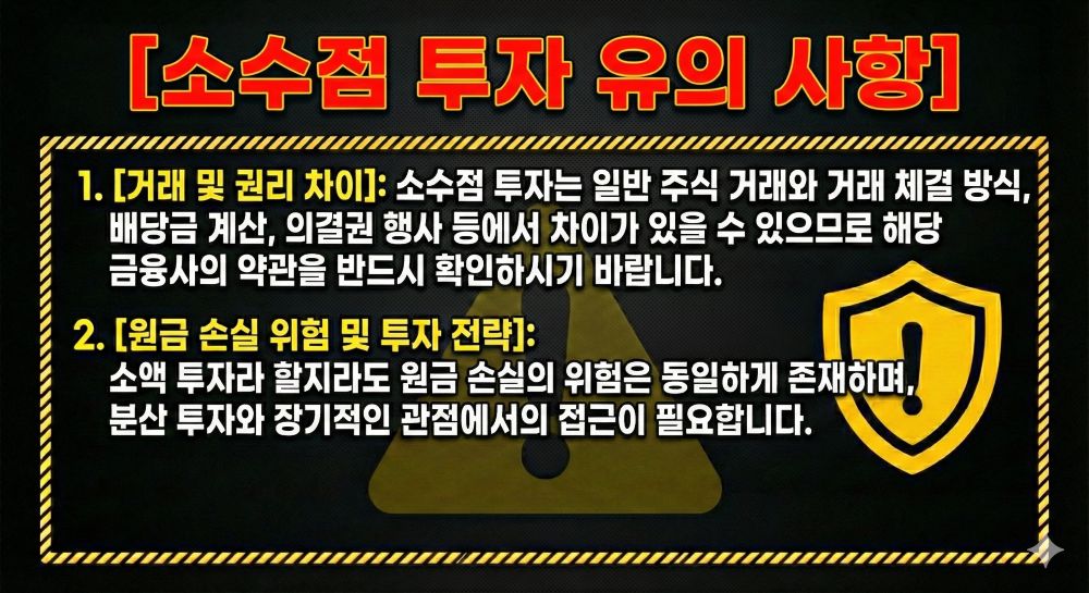 소액으로 시작하는 실험이지만, 미국 주식과 소수점 투자의 특성상 반드시 인지해야 할 주의사항이 있습니다.